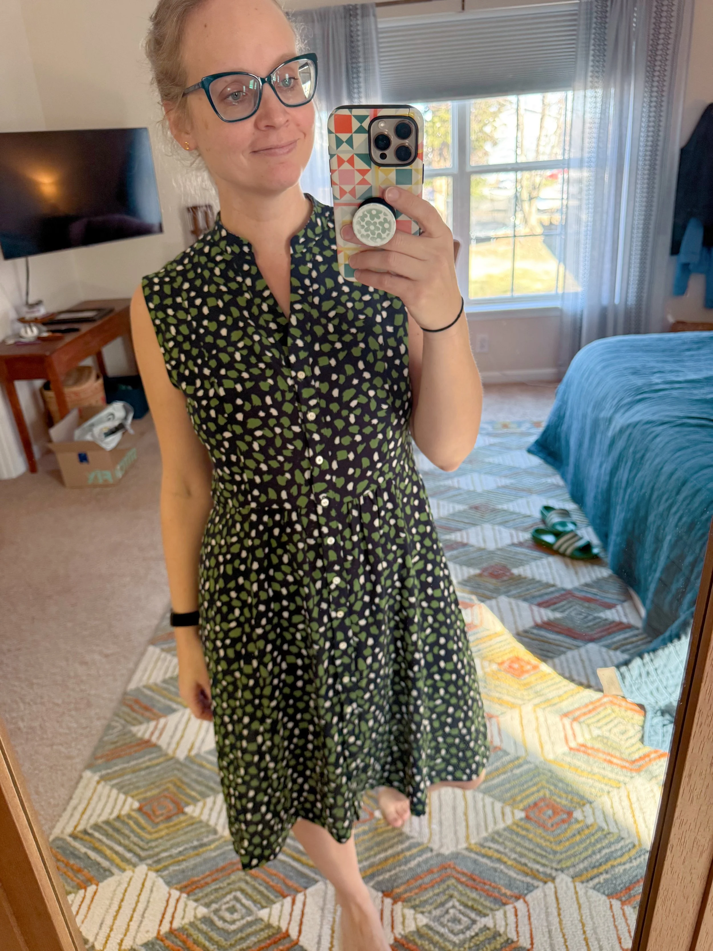 I finished a dress last week and then the weather turned cold again, so I didn’t get to wear it to church. Rude. But it turned out so great! On Instagram, I made some stories about my short waist adjustment and had lots of messages from people about how helpful that was, so I saved it as a highlight under my profile. If you have pooling fabric around the middle in your clothes, you might want to watch it!