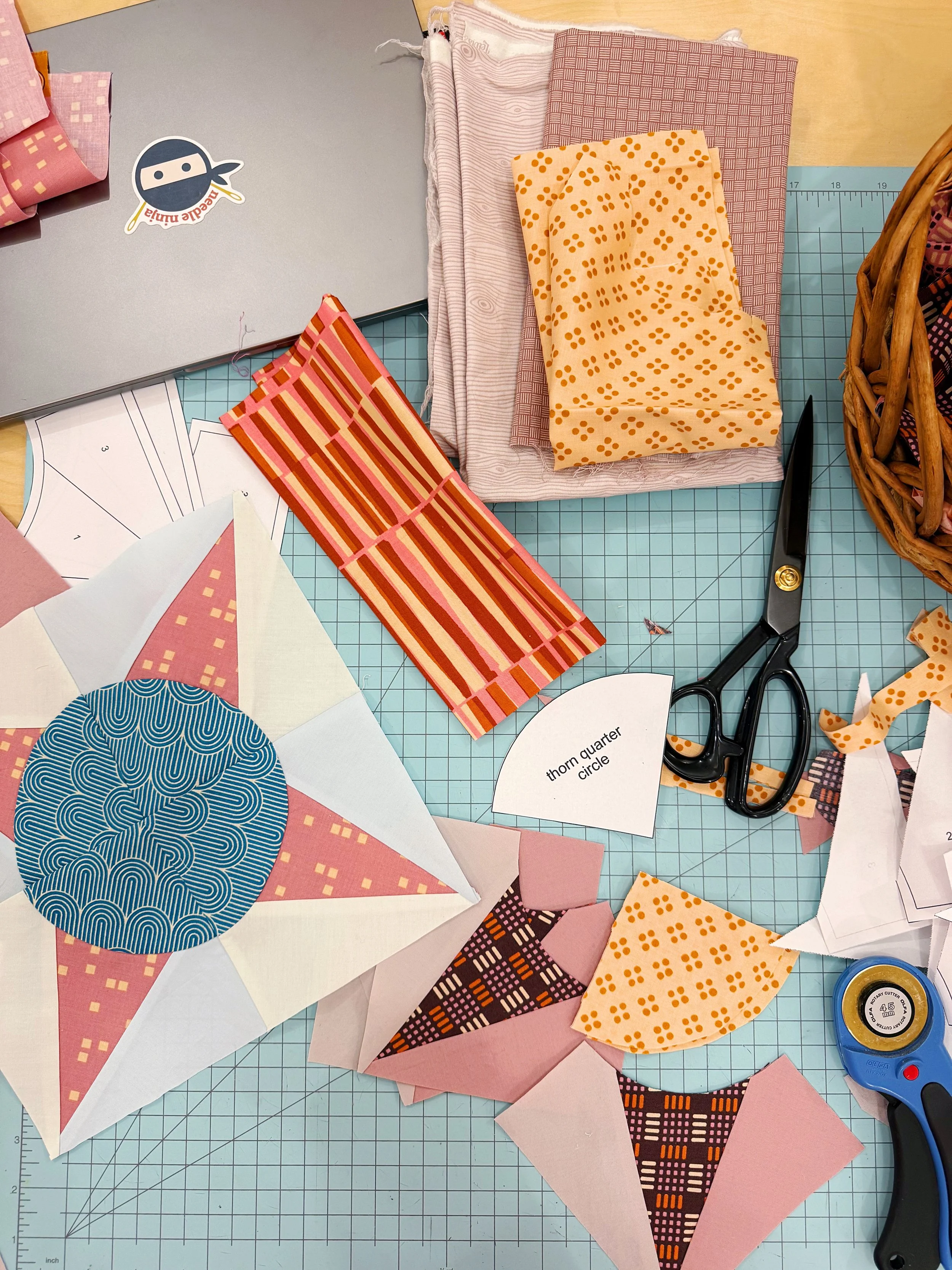 I also made progress this weekend on my block of the month club. I knew when I started that the curvy blocks would be my least favorite. The reason I learned to do wonky curves is because regular curves, with templates, are just so fussy! But, after the first few, I found if I snipped the seam allowance of the inner curve in four places, they sewed together much more easily. I am really liking the fabrics I’m using, but I think I’m just being reminded of why I prefer quilting without patterns, LOL.