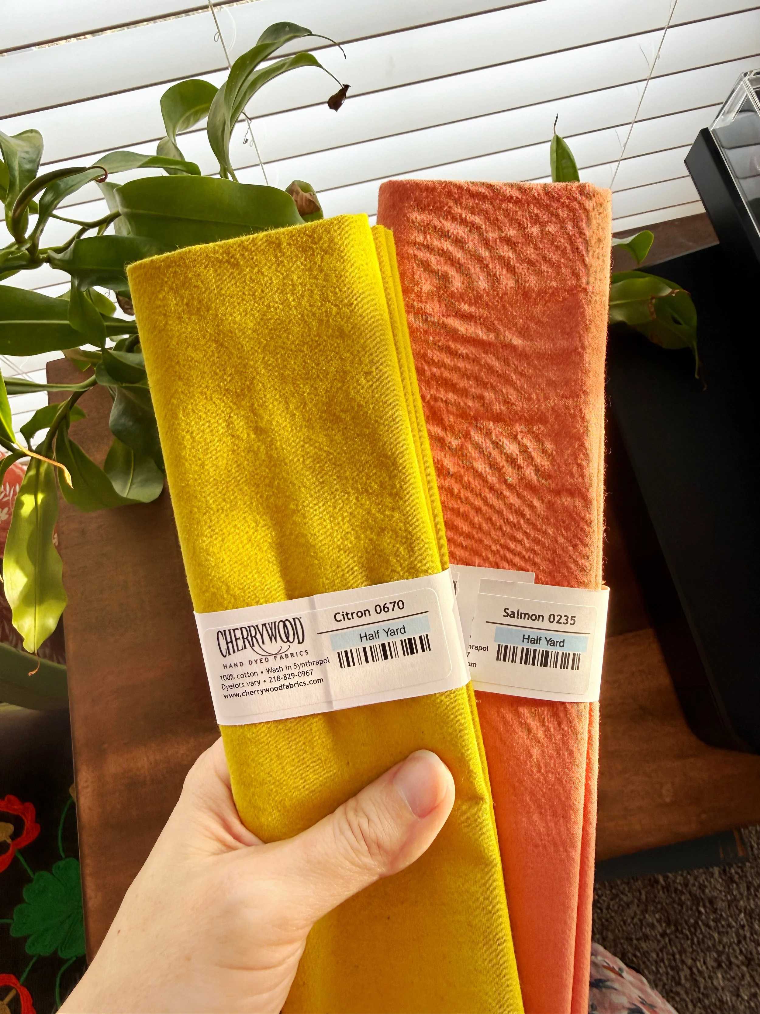 I managed to go into the vendor hall for a few minutes and bought these two hand dyed fabrics from Cherrywood Fabrics. I had never heard of this company before, but if you’ve been to the Paducah, KY quilt festival, you may have (I have never been).